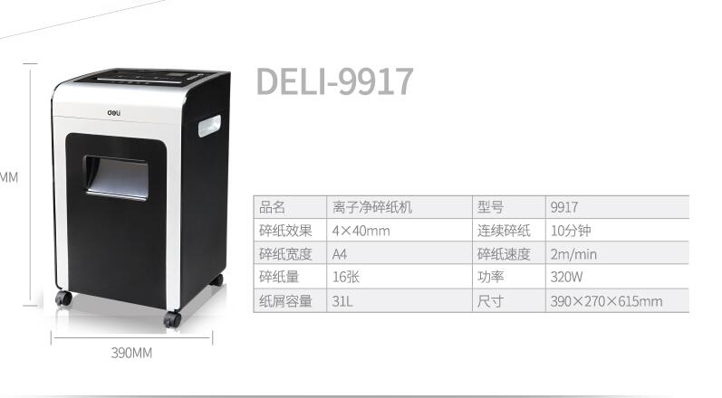 得力9917文件離子凈碎紙機(jī)辦公商用機(jī)密資料粉碎機(jī)3級(jí)保密